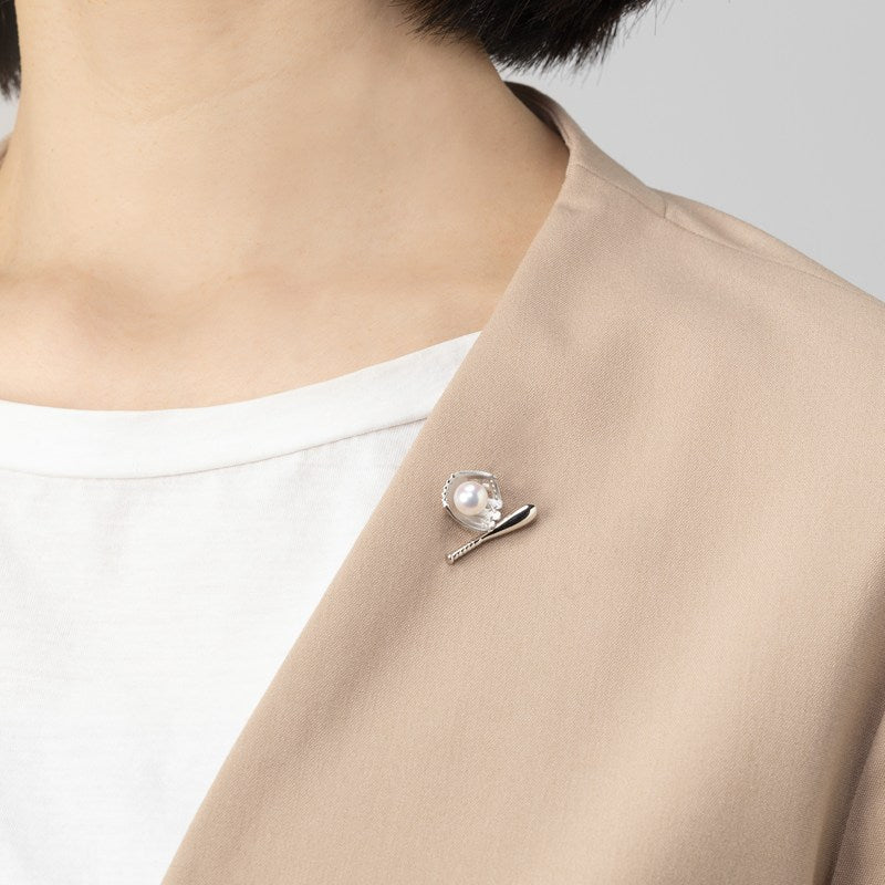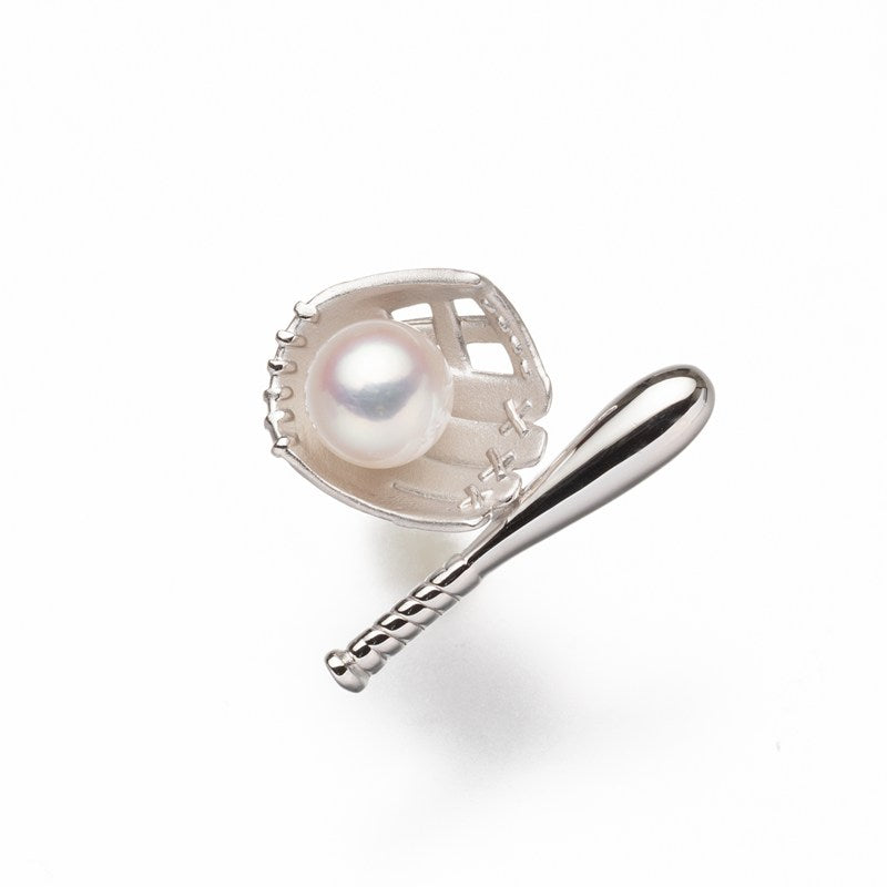 キャッチしたボールを思わせるように、約6.5mmのアコヤパールがそっと添えられています。