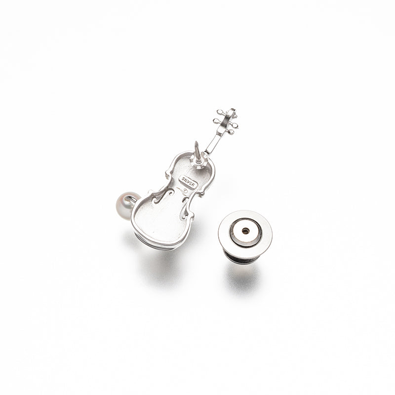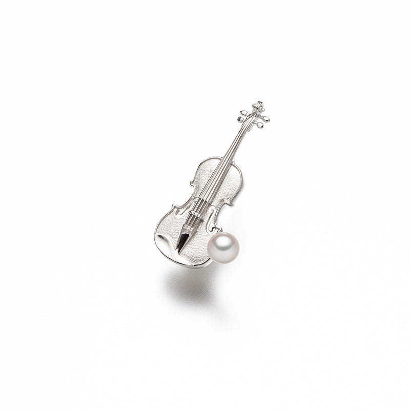 シルバーで丁寧に仕上げたバイオリンモチーフに、約5mmのアコヤパールを添えた上品なピンブローチです。細部まで表現されたフォルムは小さなアートのようで、アコヤパールのやわらかな光がクラシカルな雰囲気を引き立てます。襟元やバッグ、帽子にさりげなく付けるだけで、音楽が聞こえてきそうな華やぎをプラス。ミニサイズながら存在感があり、音楽好きの方へのギフトにも最適です。日常にも特別なシーンにも寄り添う、愛らしい一品です。