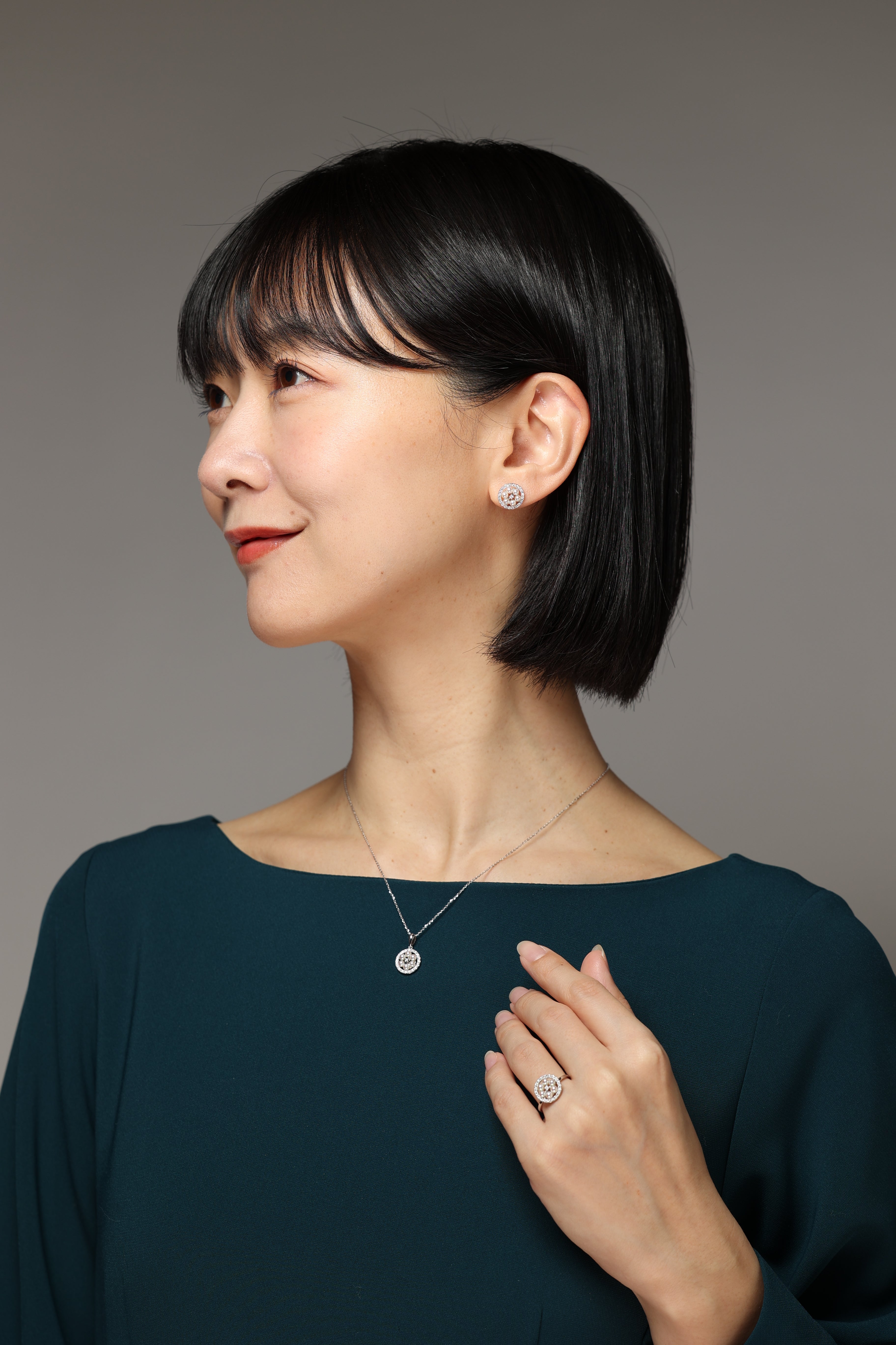 丸みを帯びたフォルムが指先をやさしく包み込み、身につける人の動きに合わせて上品に輝きます。