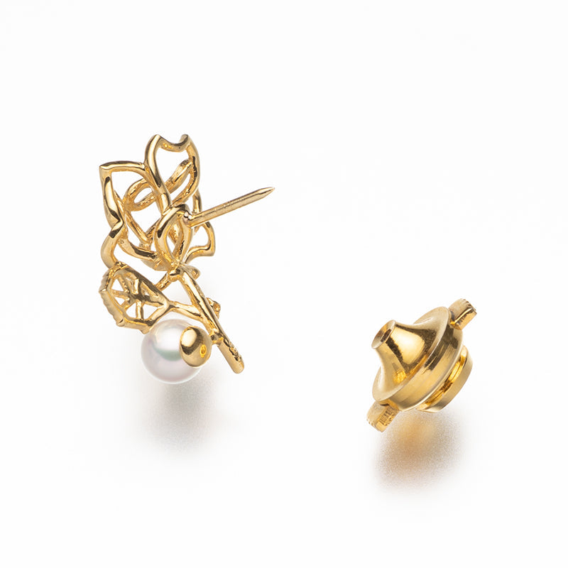 物語に登場する一輪のバラを思わせる、繊細でロマンティックなK18イエローゴールドのピンブローチ。
