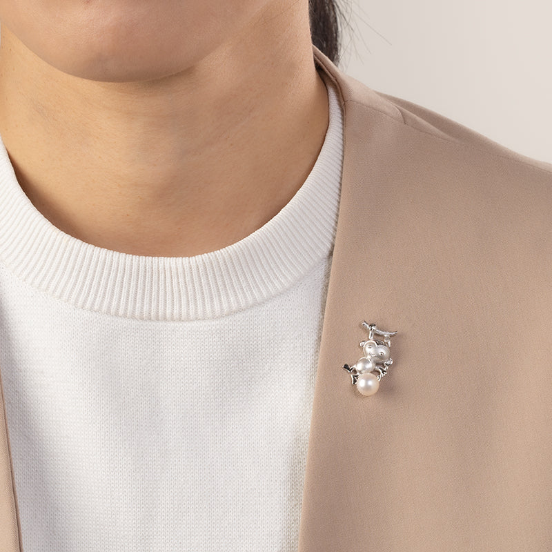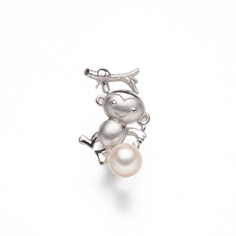 シルバーで愛らしい表情に仕上げたモンキーのモチーフに、約7.5mmのアコヤパールを添えた遊び心あふれるピンブローチです。丸みのあるフォルムと軽やかなポーズが可愛らしく、アコヤパールのやわらかな光沢が大人の上品さもプラス。ジャケットやバッグ、帽子にワンポイントとして付けるだけで、コーディネートに明るさと個性を添えてくれます。身につける人を自然と笑顔にしてくれる、ギフトにも喜ばれるチャーミングな一品です。