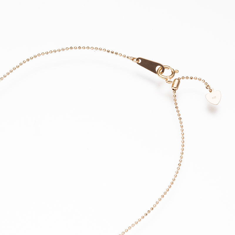 全長45cmでデコルテに美しく沿い、動くたびに小さな光が揺れます。