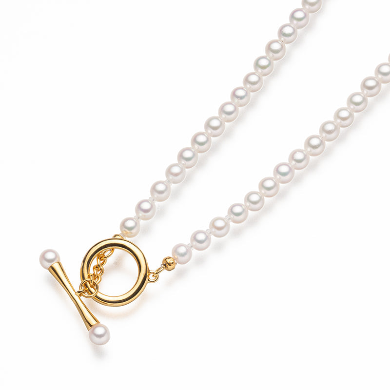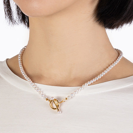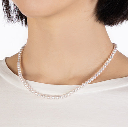 約4.5mmのアコヤパールを連ねた、上品で程よい存在感のネックレスです。