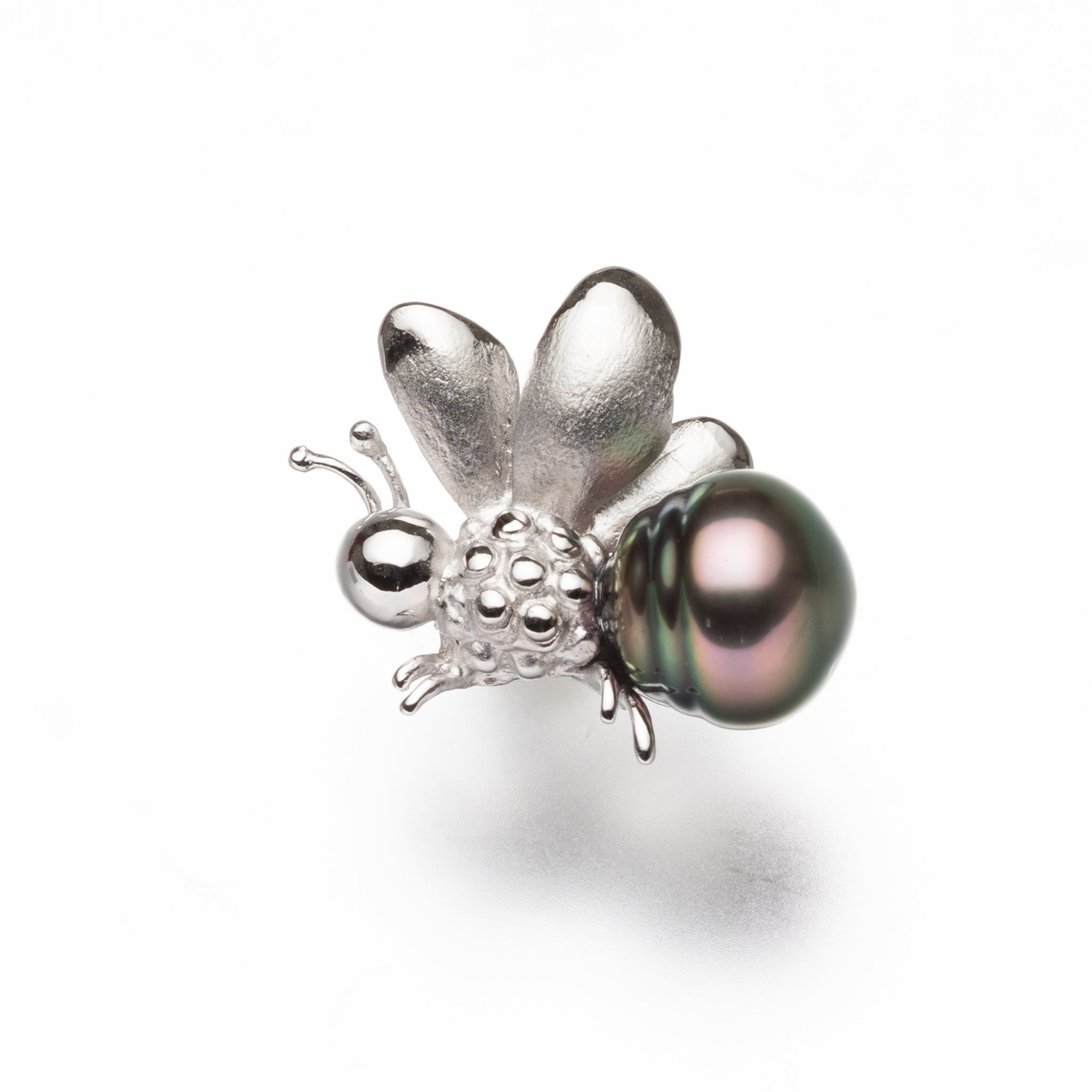 9.8mmの黒蝶パールをあしらった、はちモチーフのシルバーピンブローチ。艶やかな黒蝶パールの深みのある輝きと、しっかりとしたフォルムの蜂のデザインが印象的で、見る人の目を惹きつけます。力強さと繊細さをあわせ持つこのブローチは、装いにインパクトと個性をプラス。自分らしさを大切にする方にぴったりの、存在感あるピンブローチです。※本商品は実店舗と在庫を共有しておりますので、ご注文いただくタイミングによっては在庫切れの場合がございます。あらかじめご了承くださいませ。