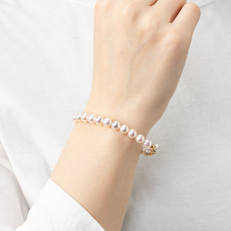上質な6.5mmアコヤパールを贅沢に連ねた、K18イエローゴールドクラスプのブレスレット。