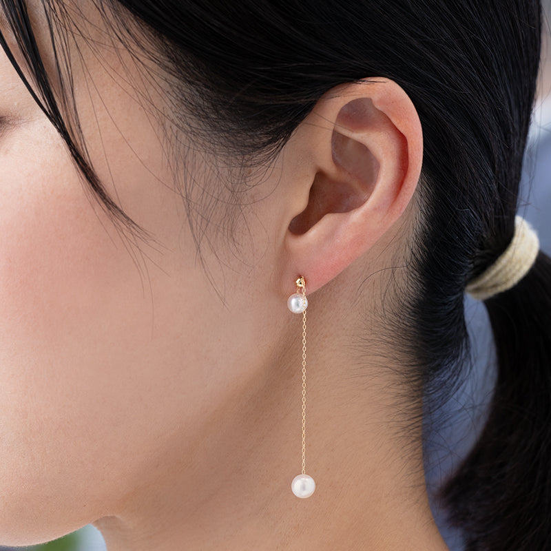 The pearls are connected by a chain, and you can enjoy various looks by adjusting the length.