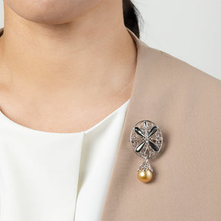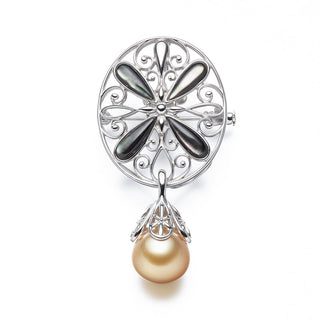 一枚银色蝴蝶图案胸针,由 11 毫米黑珍珠制成。精致的外壳设计给人一种优雅的印象。下面摇曳的黑珍珠是可拆卸的,可以作为胸针或吊坠头使用。这是一件俏皮的作品,可以以多种方式进行造型以适合您的心情和服装。 *该产品与我们的实体店共享库存,因此根据您下订单的时间,可能会缺货。感谢您的理解。